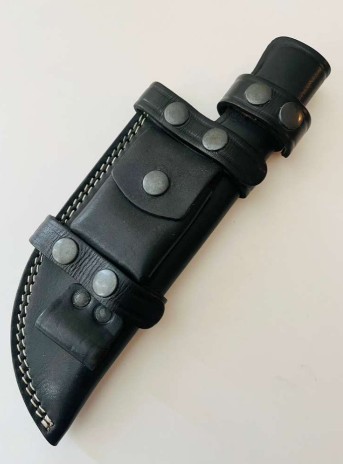 For added protection and classic style, the knife comes with a premium leather sheath, making it easy to carry and store securely.