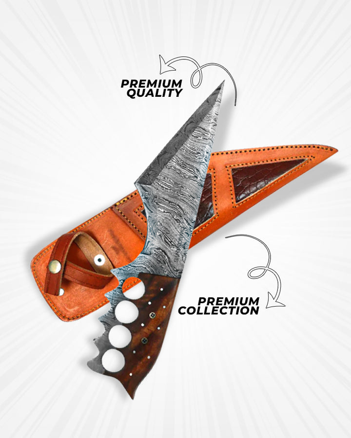 Experience the perfect balance of craftsmanship, strength, and control with our Wooden Handle Damascus Knife with Four-Finger Grip. Hand-forged from high-quality Damascus steel, this premium fixed blade knife delivers exceptional durability,...